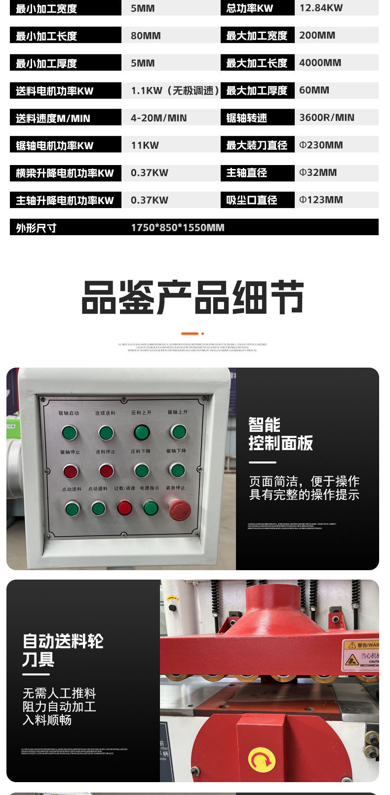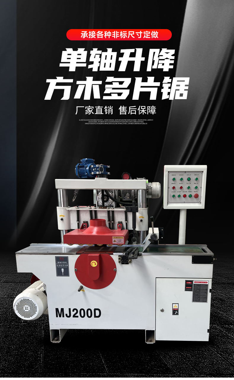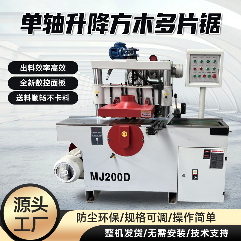 单轴升降方木多片锯,木材加工中用于批量将方木开成多片规格板 / 条的高效设备,核心是单主轴可升降设计,兼顾通用性与高精度,广泛用于建材、家具、托盘等行业。...